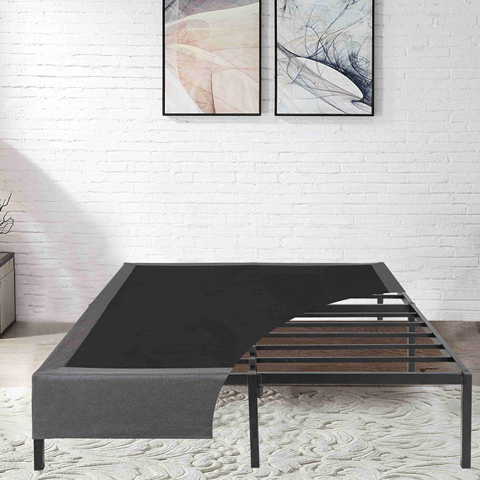 Cadre de lit en métal facile à assembler une boîte matelas base de lit en métal lit plate-forme avec housse en tissu