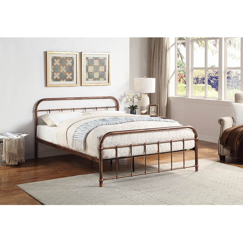 Vente en gros brosse à main de Style industriel Antique plate-forme de lit en fer forgé cuivre Bronze couleur métal fer cadre de lit